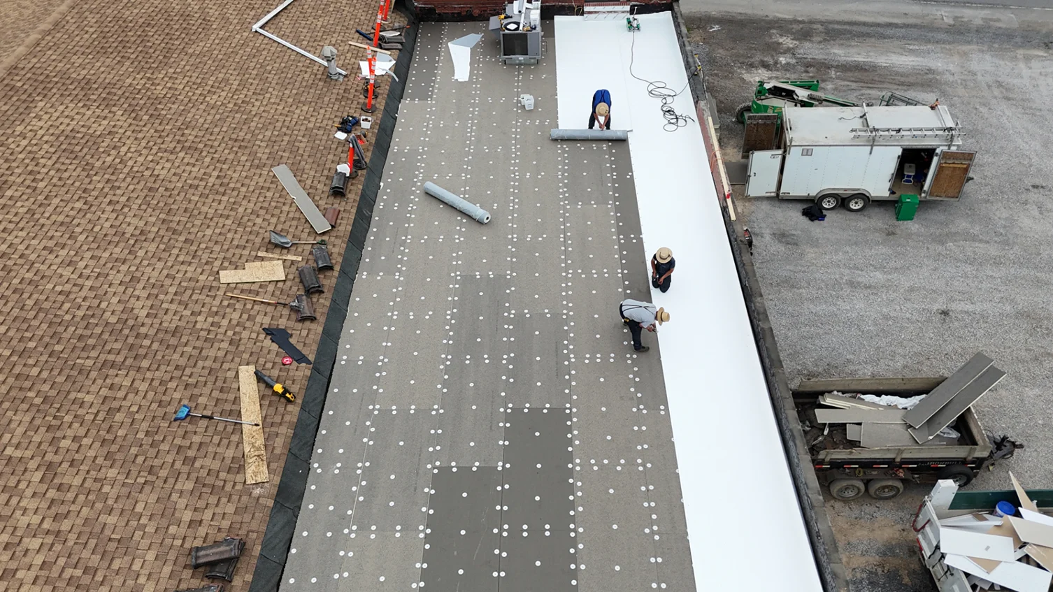 View photos of our commercial roofing work, including single-ply membrane systems.